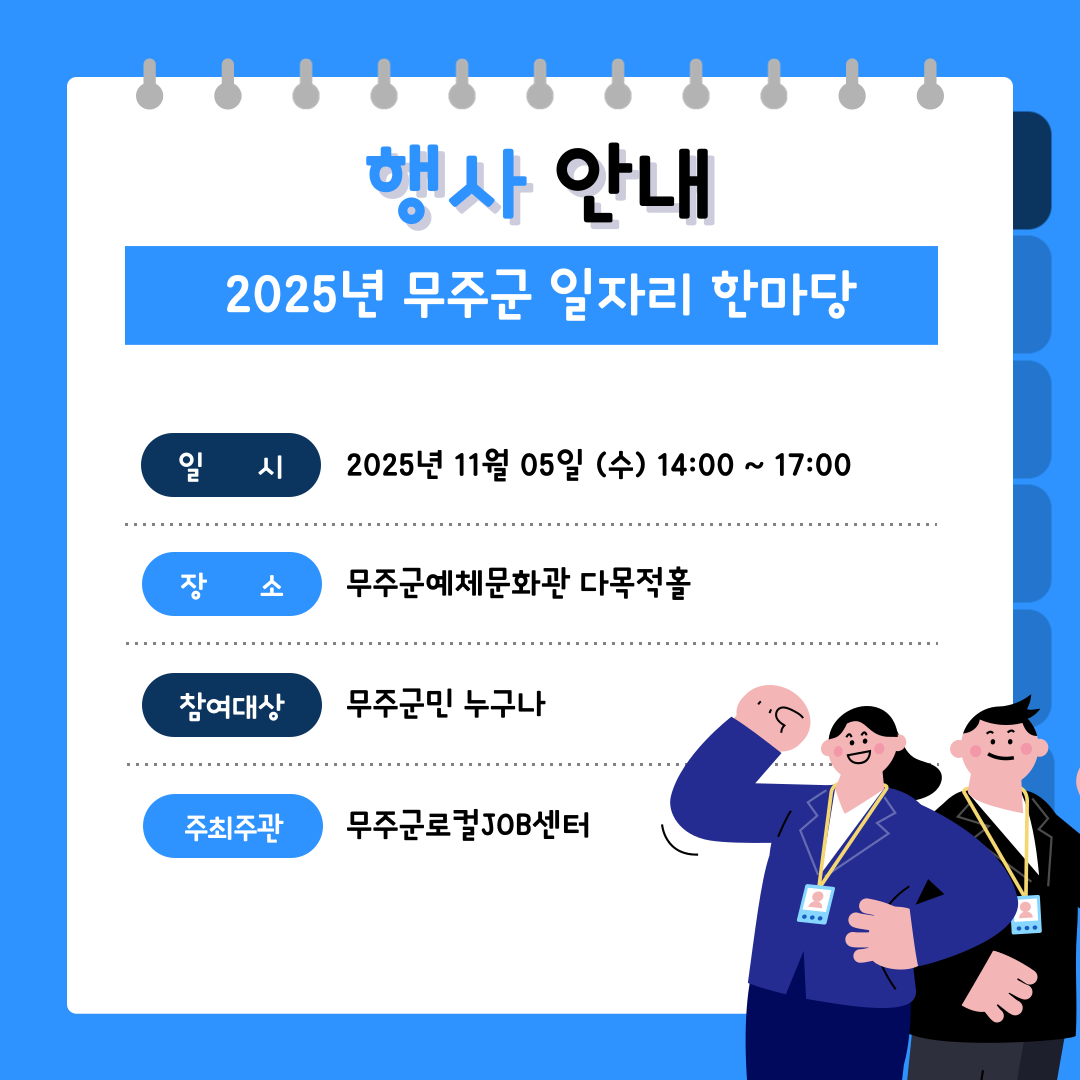 2025년 무주군 일자리 한마당 관리자12025-10-27조회 118 이전글 무주신문 제346호(251027)_무주군로컬JOB센터 다음글 무주마을늬우스 11월호_무주군로컬JOB센터 목록보기